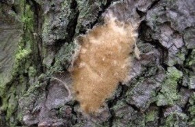 • Fungal mats (grey, black, or white in colour) form beneath the bark and cause outward pressure leading to vertical cracks in large branches and on the trunk of the tree
