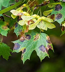 Tar spot is a common fungal disease found on the leaves of maple trees, especially Norway maple. It is rarely harmful enough to affect the health of the tree. Heavy infections can cause early leaf drop. The best way to help control the fungus is to rake and destroy leaves in the fall.
