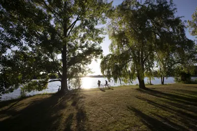 Del Crary is an open green space on the west shore of Little Lake. It is a short walk from downtown and home to the Pathway to Fame. It features a Marina, several picnic tables and a covered stage that is used for concerts, events and festivals. During the summer months, the Peterborough Musicfest concert series takes place on Wednesday and Saturday nights. Rotary Victoria Day Family Fireworks, Survivors Abreast Dragon Boat Festival and Multicultural Canada Day are a few of the major events that take place in this park. Parking is available. Washrooms are open seasonally during the spring and summer.